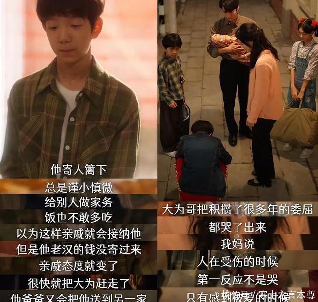 作为重组家庭的继母,她对丈夫陈海清的女儿视如己出,不仅熬夜补好女孩生母留下的旧毛衣,还会专门带她去给生母上坟,轻声说“我只是替你妈妈继续爱你”。 更难得的是,当丈夫姐夫的儿子周大为,一个满口京片子、浑身带刺的北京男孩出现时,蔡晓艳放下了对姐夫的怨恨,用极致的耐心融化了这个被生父反复抛弃的孩子。 最戳人的一幕是,当周大为以为又要被送走而准备偷偷离开时。 蔡晓艳在火车站一把拉住他,身后是整整齐齐等着他的一家人,那一刻男孩的眼泪,道尽了“家”的真正含义。 小玖觉得,蔡晓艳这个角色的成功,在于她打破了“完美继母”的虚假滤镜。 她会计较家用,会跟丈夫拌嘴,但在孩子面前永远是最坚实的后盾。这种“不完美”的真实,恰恰是当下很多家庭剧缺失的灵魂。